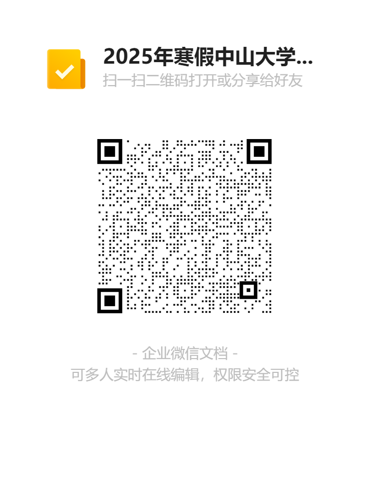 【收集表】2025学年寒假中山大学临床预见习问题反馈 https://doc.weixin.qq.com/forms/AM8AXAcdAA0AWgA_gY_ALMCNNqq0D1Kyf